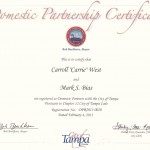 How do you celebrate 35 Great Years together? We decided to file for Tampa’s Domestic Partnership Registry. It was just one year ago that we championed the rights for DPR recognition in Tampa. Lucky for us we DO NOT live in the unincorporated Hillsborough County where elected officials just voted this down.