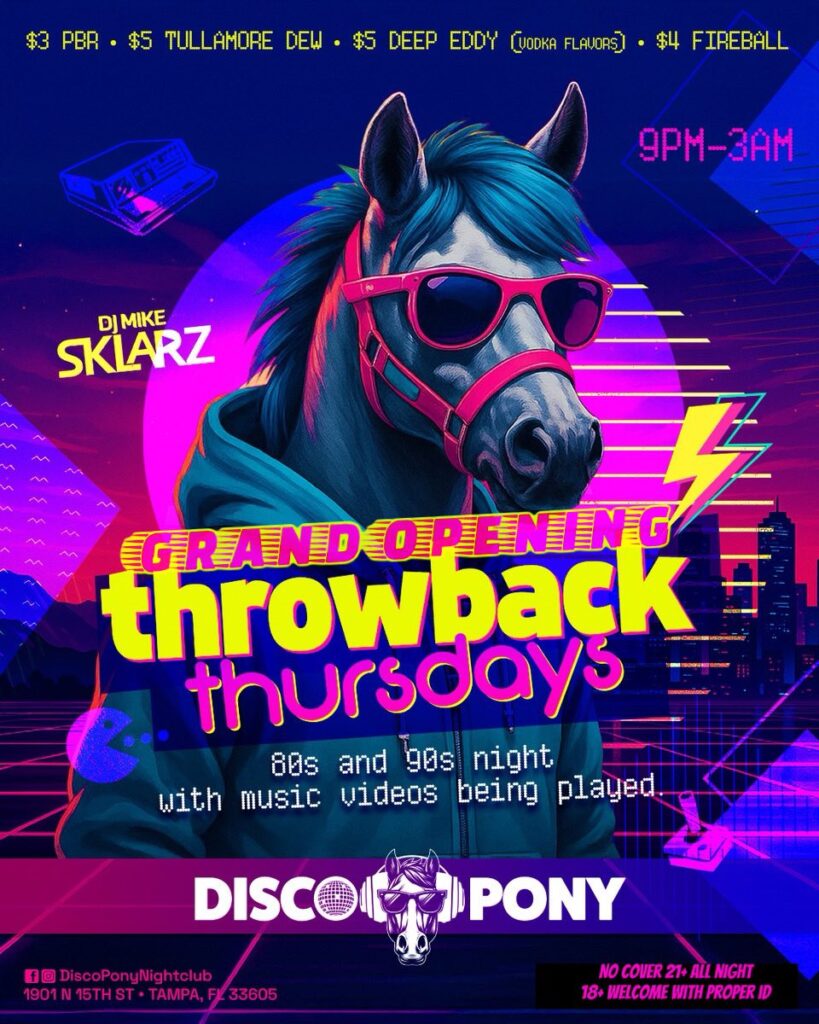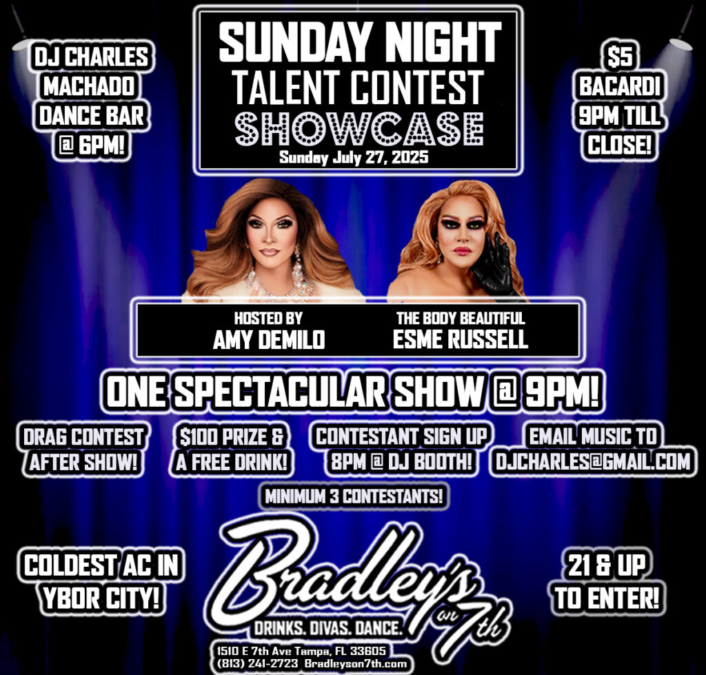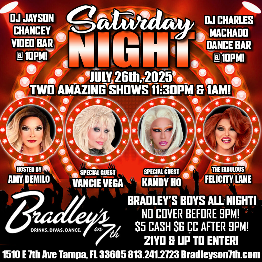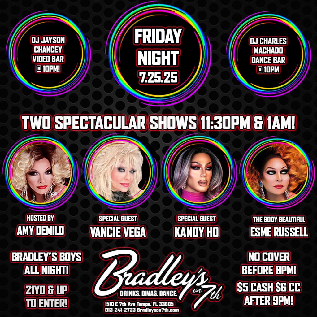 Disco Pony Nightclub, 1901 N 15th St, Tampa, FL. Ybor, the Tampa Pride Foundation Scholarship Fund Benefit Show! Hosted by Mr. And Miss Tampa Pride Amari Lavish & Niomi Onassis Long Knight Two great shows back-to-back, performances by Prince Elijah, Charlotte Caballero, Kiala Santi, kamarion Lavish, Tee Iman, Imani L Valentino II