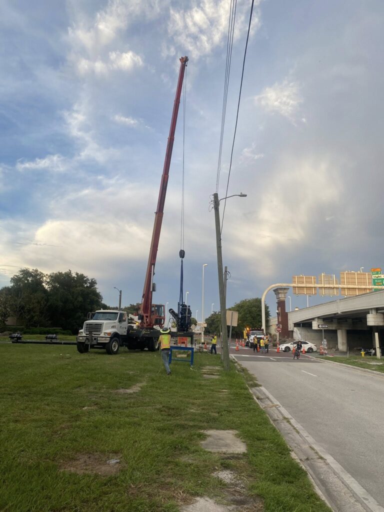 Erecting the new traffic light and 15th Street signage at that troublesome corner near La Segunda