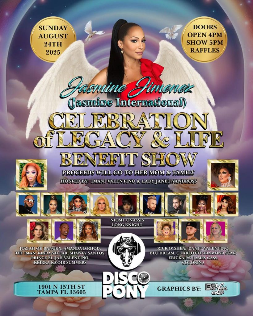 Join us on this Sunday August 24th as we Celebrate the Legacy and life of Jasmine International Jasmine Jimenez at Disco Pony Nightclub Doors Open at 4pm, Show starts at 5Pm