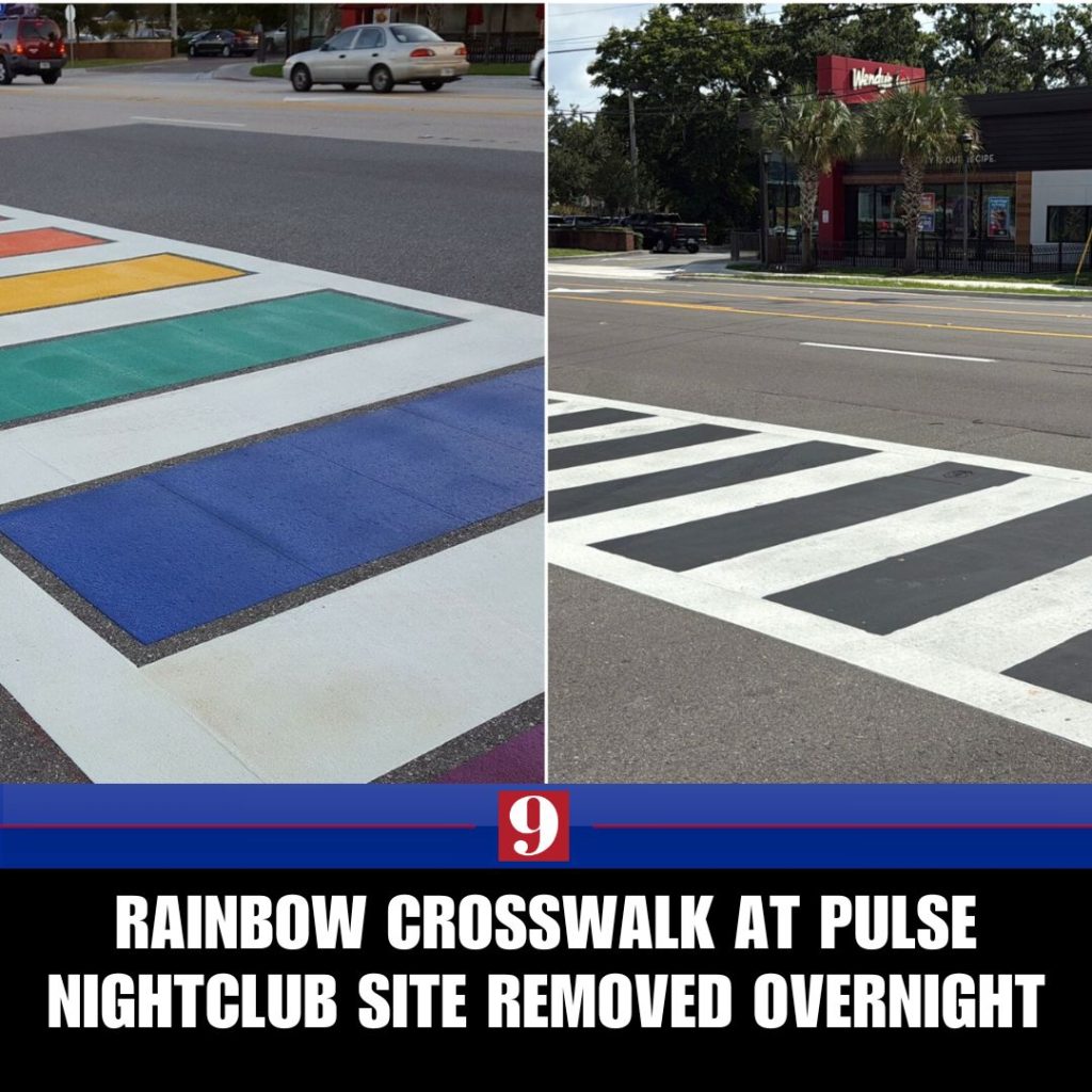 Rainbow crosswalk at Pulse nightclub site removed overnight.